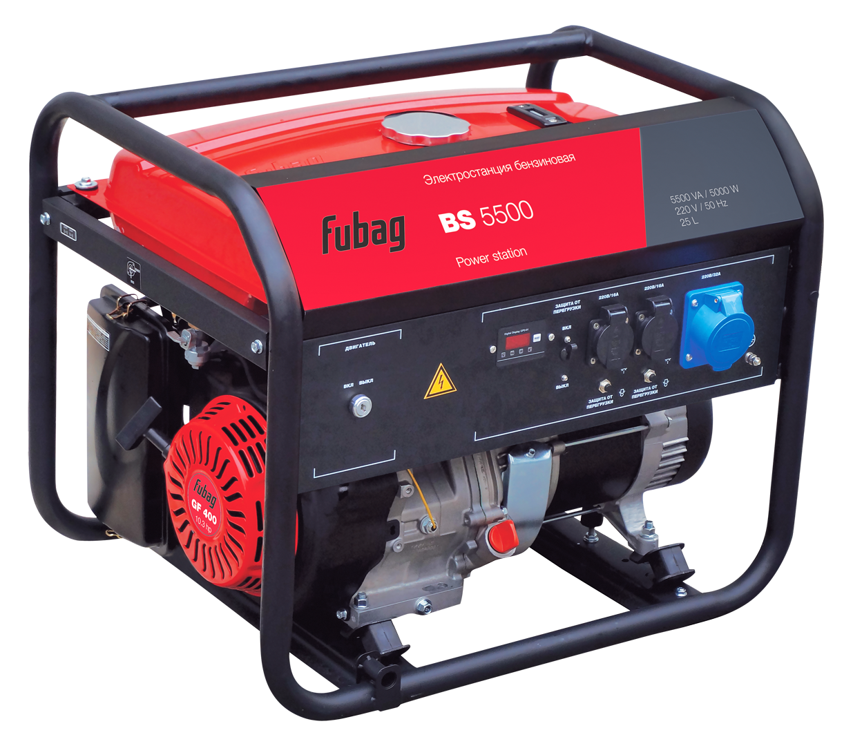 Оборудована мощным и экономичным профессиональным OHV-двигателем FUBAG. Номинальная электрическая мощность составляет 5 кВт, этого достаточно для работы бытовых электроприборов, включая насосы систем отопления и водоснабжения, электроинструмента и садовой техники.