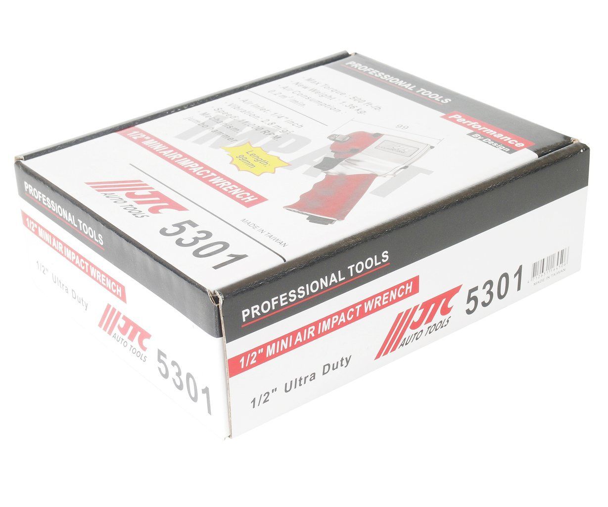 Ударный мини-пневмогайковерт JTC 5301 работает на сжатом воздухе. Металлический корпус придает прочность конструкции и защищает внутренние узлы от повреждений. Хорошая производительность достигается благодаря большому числу оборотов (11000 об/мин) и высокому крутящему моменту (678 Нм).