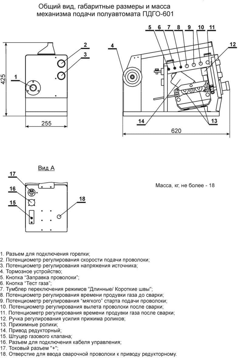 ПДГО-601 предназначен для полуавтоматической сварки сплошной и порошковой проволокой на постоянном токе в среде защитных газов в комплекте с источниками для МИГ/МАГ сварки.
