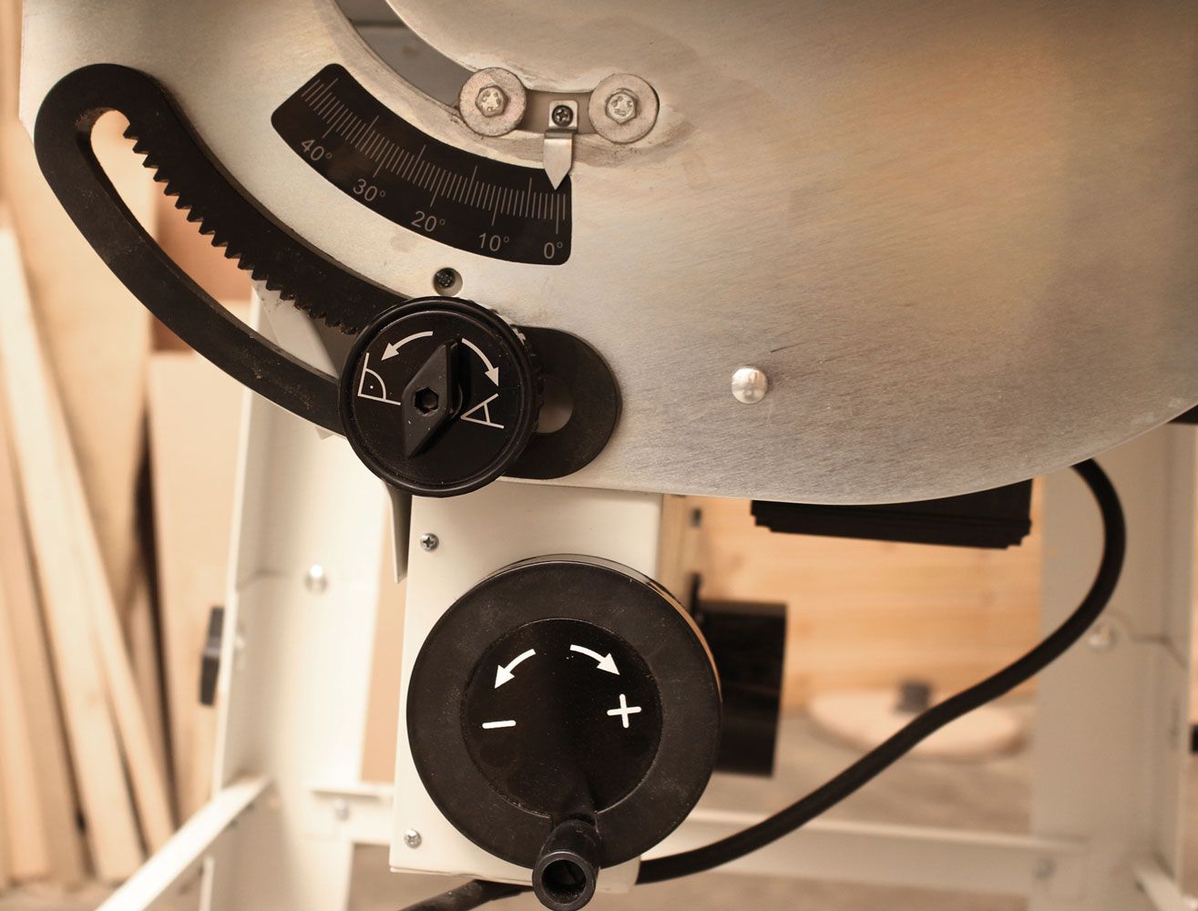 - Регулировка наклона пильного диска